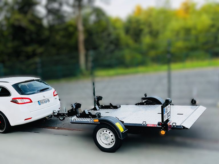 Ich vermiete einen Motorradanhänger, inklusive Absenkfunktion, damit du dein Fahrzeug einfach und sicher be- und entladen kannst. So kommst du problemlos und entspannt ans Ziel.